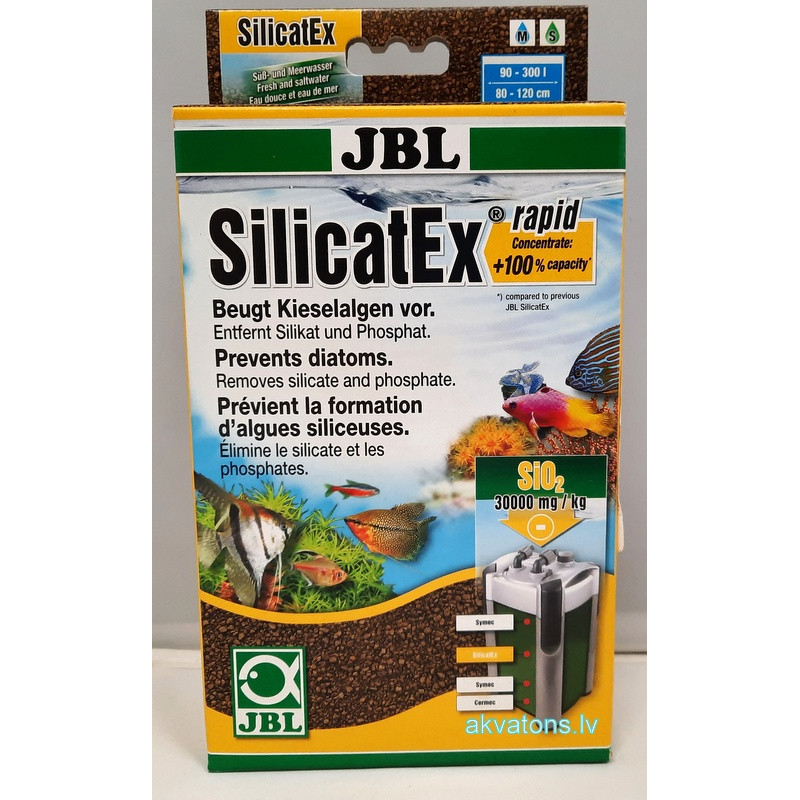 SilikatEx Rapid filtra materiāls noņem silikātus no saldūdens un sālsūdens akvārijiem. Tas atņem nevēlamās kramaļģes (brūnās nogulsnes) barības vielas, kas bieži nonāk saldūdens akvārijos. Cita starpā SilikatEx Rapid noņem arī fosfātus un tādējādi kontrolē citu aļģu augšanu. Šis filtra materiāls rada pareizos vides apstākļus, gluži kā biotopā.